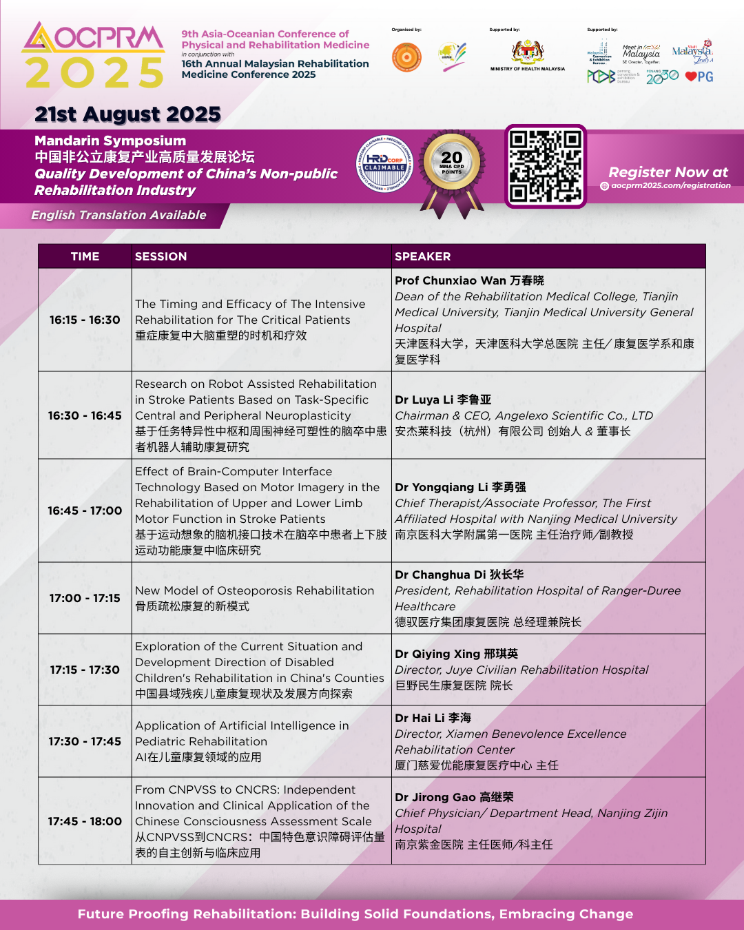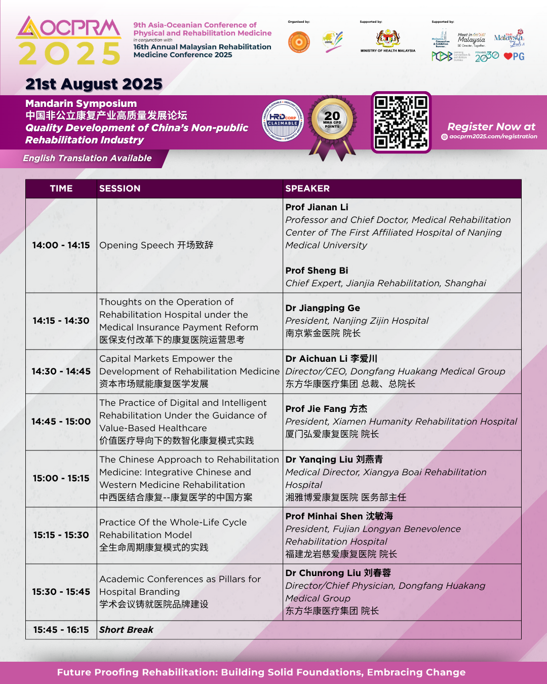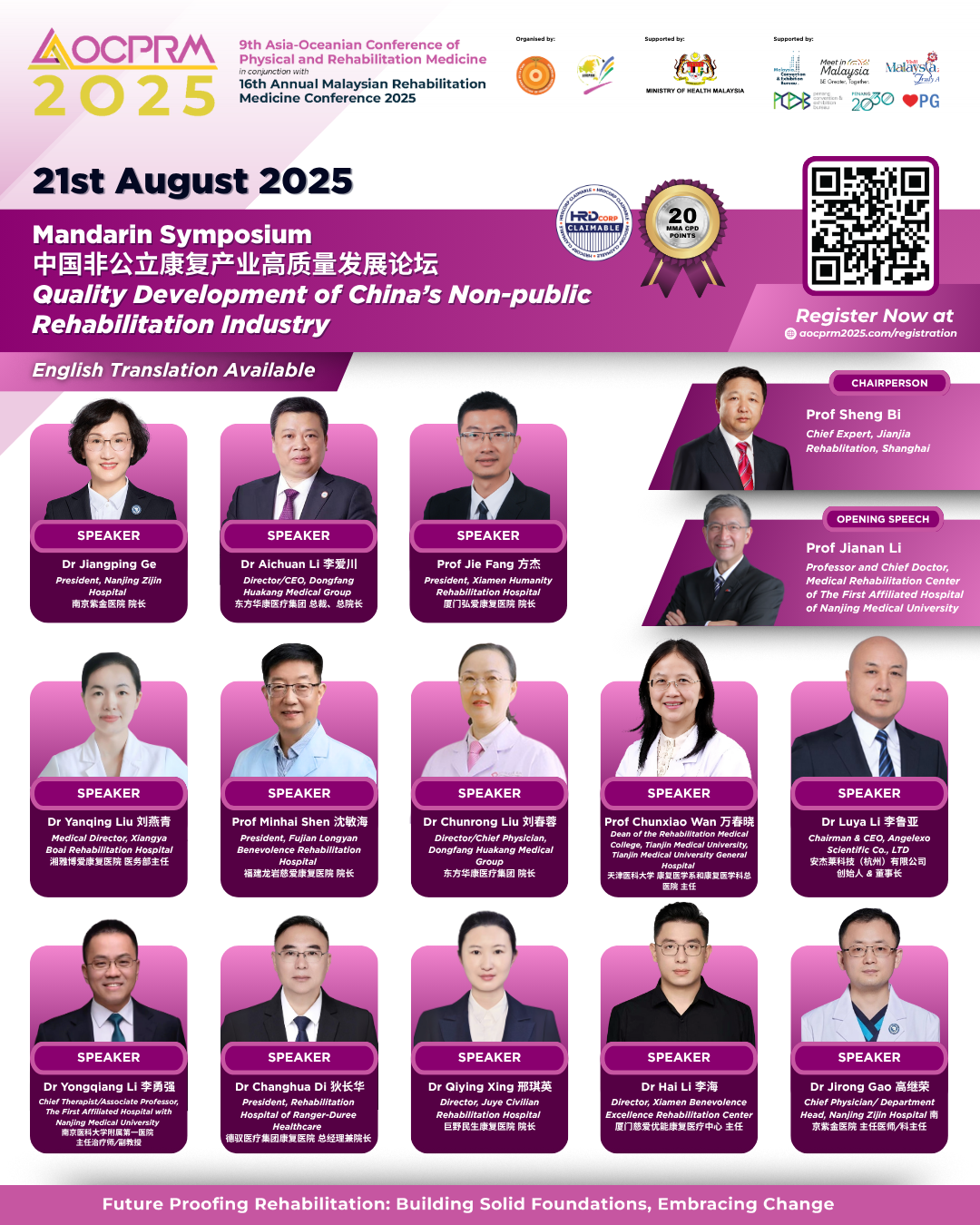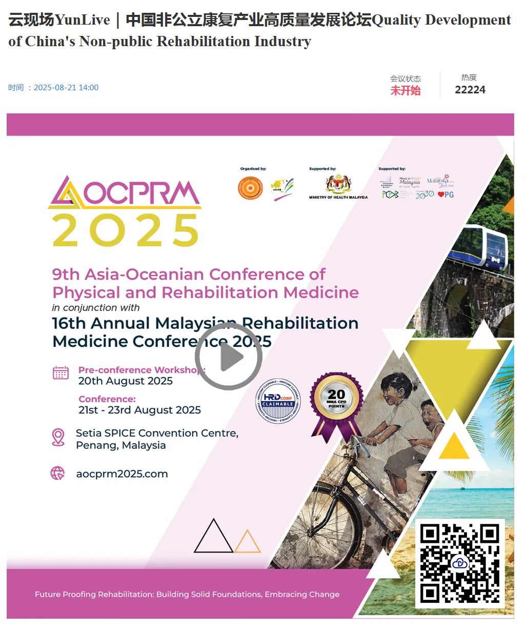 2025年第9届亚洲 - 大洋洲物理与康复医学大会(AOCPRM 2025)暨第 16 届马来西亚康复医学年会,将于2025年8月21- 23日,在马来西亚槟城国际会展中心盛大举办 。
