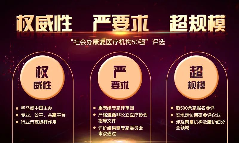 “社会办康复医疗机构50强”评选项目是国内最具权威和影响力的社会办康复品牌评选体系之一,它推动了更多优秀社会办康复医疗机构进入公众视野,鼓励社会办康复医疗机构分享行业最佳实践,从而挖掘康复医疗市场优秀标杆企业,有效助力中国康复医疗服务发展,为进一步提升中国康复医疗综合服务水平贡献力量。