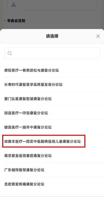 选择 “分论坛”➡ “岐奥丰医疗一西安中医脑病医院儿童康复分论坛”