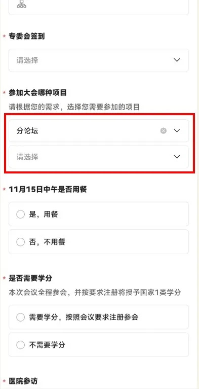 “参加大会哪种项目” 栏
