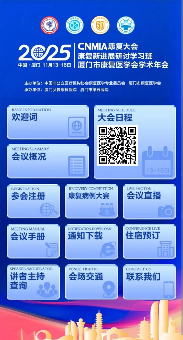 中国非公立医疗机构协会康复医学专业委员会2025学术年会暨厦门市康复医学会2025年学术年会(2025·CNMIA康复大会暨厦门市康复医学会2025学术年会)将于2025年11月13-16日在厦门召开。