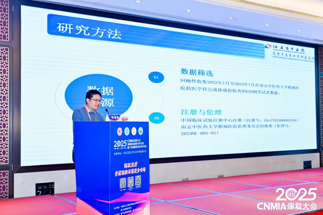 江苏省中医院、中华中医药学会中医康复技术传承创新平台常委徐道明讲解了《基于临床大数据分析全身肌量和脂量对骨矿含量的影响》。